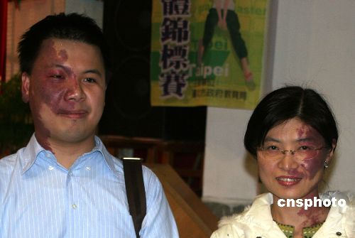 十二月五日,LG杯世界圍棋賽冠軍、臺灣“紅面棋王”周俊勛應(yīng)邀出席臺北市學(xué)生圍棋團體錦標賽,現(xiàn)場一位“紅面”女子與其合影留念,相映成趣。中新社發(fā) 董會峰 攝