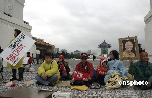 十二月六日上午,幾十位民眾繼續聚集在臺北市“大中至正”牌樓下,以演講、唱歌等方式抗議當局將拆除“大中至正”牌匾。中新社發 陳國華 攝
