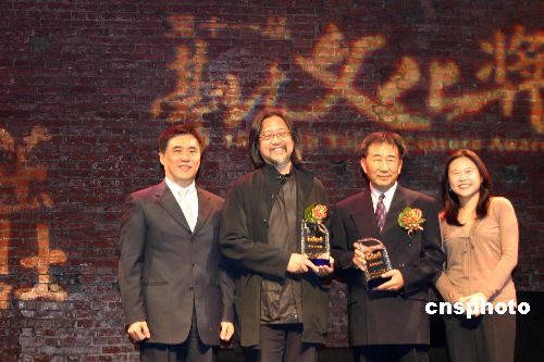 十二月七日,在臺北市著名的老劇場——紅樓劇場,第十一屆“臺北文化獎”在這里頒發。賴聲川先生創辦的“表演工作坊”以及“耕莘實驗劇團”創建人黃英雄獲得本屆大獎。圖為臺北市長郝龍斌、臺北市文化局局長李永萍與獲獎者合影。中新社發 陳國華 攝