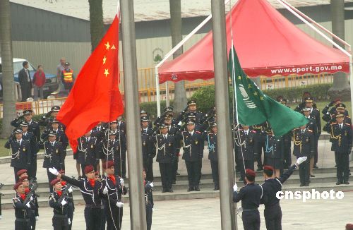 十二月二十日清晨,澳門蓮花廣場舉行隆重的升旗儀式,慶祝澳門特別行政區成立八周年。澳門特首何厚鏵、中央人民政府駐澳門聯絡辦公室主任白志健及各界人士出席升旗儀式。中新社發 史利 攝