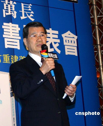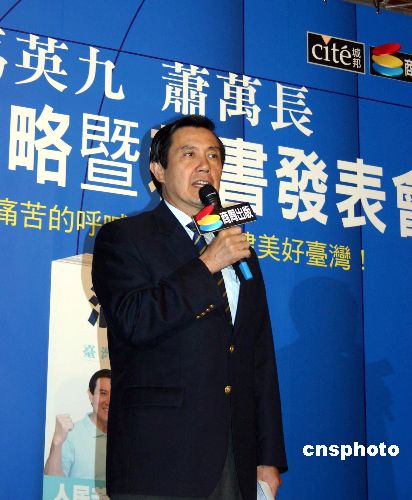 二十日,國民黨二00八參選人馬英九及其搭檔蕭萬長聯合出版的新書在臺北正式發表,該書以兩人對談的方式,詳述他們“拼經濟,救民生”治理臺灣的具體政策。中新社發 陳國華 攝