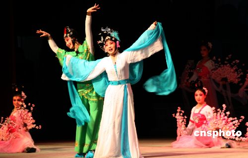 一月三日晚,浙江婺劇《白蛇傳》首度在臺北中山堂演出,傾倒臺灣票友。該演出由臺灣財團法人沈春池文教基金會與浙江省文化藝術交流促進會聯合主辦,將在臺灣巡演五場。中新社發 陳立宇 攝