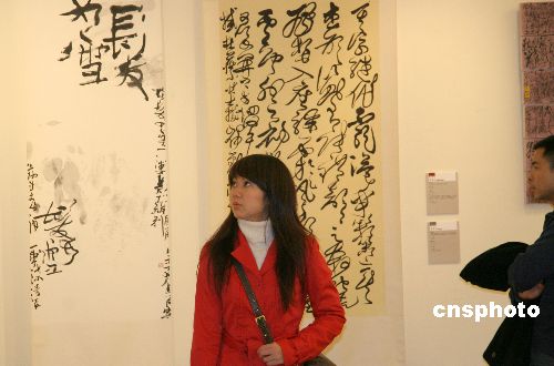 一月六日下午,由臺灣何創時書法藝術基金會等主辦的“傳統與實驗書藝雙年展”在臺北開幕,臺灣資深書法家及書壇新秀六十九人共創作一百三十六件作品參展。本次書藝展以“流行文化與語言”為主題,參展作品分為“傳統”與“實驗”兩類,既彰顯中國傳統書法藝術,又頗富時代創意特色,很受年輕人關注。中新社發 孫自法 攝