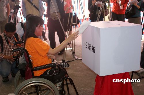 臺灣“立委”選舉進入倒計時。一月十一日上午,臺北市慈善團體輔導殘疾人如何投票。中新社發 陳立宇 攝
