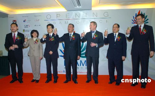 一月二十四日,澳門英國商會(huì)辦事處在中土大廈正式啟用,澳門特首何厚鏵等嘉賓親臨舉杯祝賀。澳門英國商會(huì)辦事處將擔(dān)任英澳兩地政府和商界之間的橋梁,為兩地造就商機(jī)、聯(lián)系及交流機(jī)會(huì)。中新社發(fā) 史利 攝