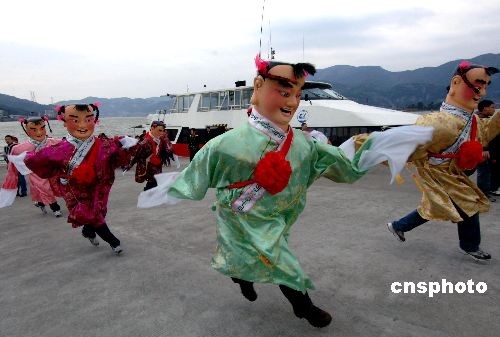 二月十七日下午,以馬祖地區知名人士王忠銘為領隊的馬祖“兩馬同春鬧元宵”交流團一行近九十人,搭乘“金龍”輪經“馬祖-馬尾”航線直達福州馬尾客運碼頭。中新社發 王東明 攝