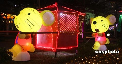 二月十七日晚,臺北市舉辦盛大的花燈節。展示的花燈作品,十有八九都與“鼠”有關,可謂鼠趣橫生。中新社發 耿軍 攝