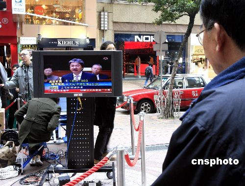 二月二十七日,香港財政司司長曾俊華向立法會提交二零零八至零九年度財政預算案,公布政府綜合盈余達一千一百五十六億元,創歷來新高,并推出多項減稅和惠及社會的措施。當地電視臺街頭直播曾俊華作報告,并收集市民意見。中新社發 王麗南 攝