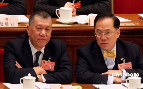 3月5日上午,十一屆全國人大一次會議在北京開幕。香港特首曾蔭權和澳門特首何厚鏵在主席臺上。中新社發 張宇 攝