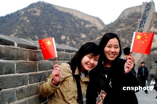 3月8日,北京華文學院組織百名華裔女生登上長城同慶“三八”節,使他們真正感受到了學院對海外華人的關心和厚愛。北京華文學院是中國國務院僑務辦公室的直屬院校。始建于1950年,辦學宗旨是為海外華僑、華人和外籍學生學習中國語言和文化提供條件,為促進中外文化交流和友好往來服務。至今,共有54個國家和地區的近5萬余名海外學生來院學習。中新社發 楊慧峰 攝