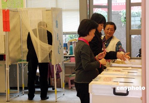 二00八臺灣地區領導人選舉投票舉行,圖為民眾在臺北一個投票所投票。此次大選,臺灣共有選舉人數17321606人。中新社發 黃少華 攝