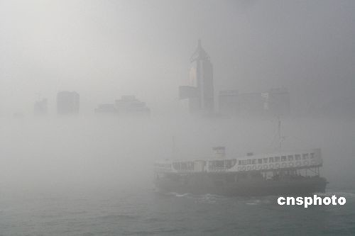 四月六日,香港清晨部分海域能見度低于兩海里,蒲臺島海域今早約六時發(fā)生兩艘貨船相撞意外,其中一艘貨船船尾被撞穿入水,事件中無人受傷。國泰航空早上一班由臺北來港的航機(jī)轉(zhuǎn)飛廣州,傍晚才起飛來港。另有一些離島至港島的渡船停開。圖為上午維港掩映在飄渺的白霧中。 中新社發(fā) 陳京松 攝