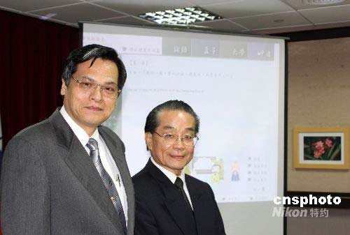 五月十三日下午,由“陸委會”主管的中華發(fā)展基金舉行《雅音四書集粹》推介會。推介以古漢語音韻誦讀的論語等“四書”。圖為“陸委會”主委陳明通(左一)、臺灣傳統(tǒng)詩學(xué)會副理事長黃冠人在推介會上。中新社發(fā) 陳立宇 攝