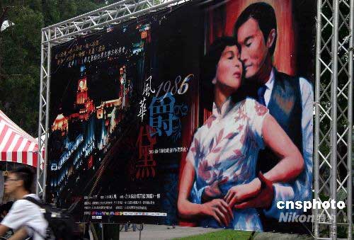 六月七日,一年一度的臺灣大學畢業聯歡舞會舉辦。今年的舞會主題是“風華爵黛”,要求男生著西裝、女生著禮服出席,并打出巨幅上海灘夜景廣告,渲染“老上海”懷舊風情。中新社發 許曉青 攝