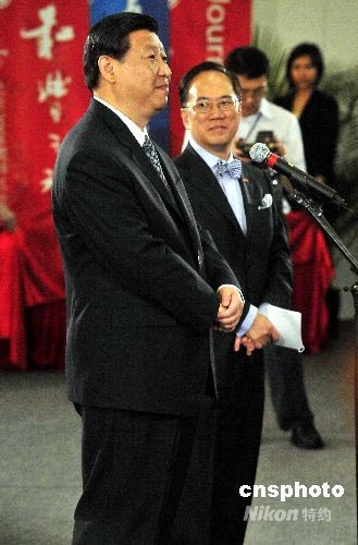 七月六日下午,國(guó)家副主席習(xí)近平在香港奧運(yùn)馬術(shù)場(chǎng)地,會(huì)見北京奧運(yùn)香港運(yùn)動(dòng)員代表。中新社發(fā) 譚達(dá)明 攝