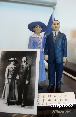 八月七日農歷七月初七,中國國民黨推出孫中山、宋慶齡革命戀人版公仔,參照一九一五年十月兩人結婚后的一張合影。公仔基座印有“精誠無間同憂樂、篤愛有緣共死生”字樣,國民黨黨史館主任邵銘煌解釋,這是當年孫中山寫給宋慶齡的情詩,看得出兩人情深意濃。中新社發(fā) 曾嘉 攝