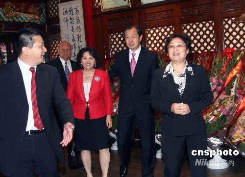 正在巴黎訪問的中國國務(wù)院僑辦主任李海峰和法國僑學(xué)界座談,聽取他們對(duì)僑務(wù)工作的意見和建議。