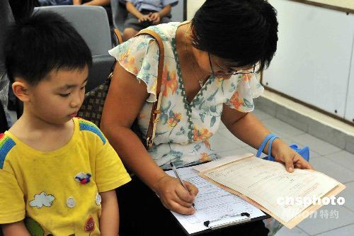 九月二十三日,香港醫管局在十八間指定診所和七間評估中心,已經為七百名懷疑飲用過問題奶品的小朋友做檢查,約四分之一至三分之一個案需要進行其他檢查。中新社發 譚達明 攝