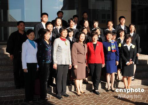 由北京華明偉業國際文化交流中心組織的“中國青少年風采之旅--2008美國行”十六位中國“小使者”,當地時間10月2日下午在華盛頓美國勞工部采訪了美國商務部少數族裔發展署副署長董繼玲女士(前排右三)和勞工部助理副部長安娜·許女士(前排右四),同學們對這兩位在美政界成功華裔女性的經歷和思想非常感興趣。圖為采訪完畢在勞工部合影。中新社發 邱江波 攝
