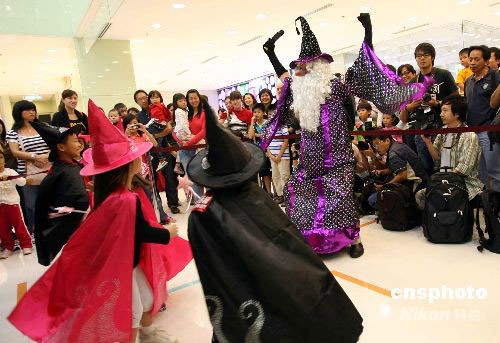 小朋友打扮成小魔法師在海港城參加宣傳活動(dòng),為即將到來的萬圣節(jié)營造氣氛。