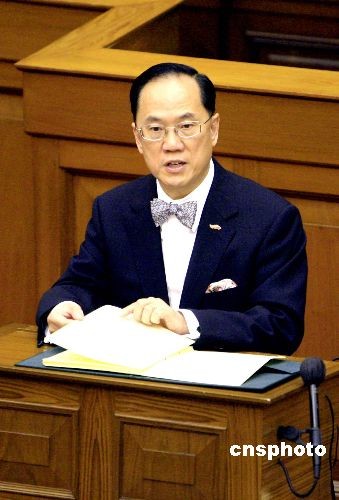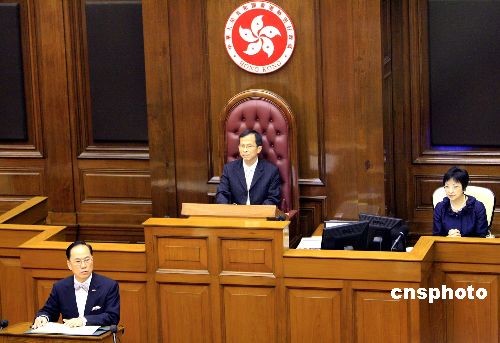 十月十五日,香港行政長官曾蔭權,向立法會發表二零零八至零九年施政報告。中新社發 張勤 攝