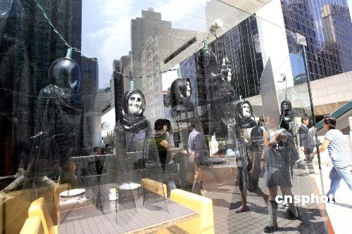 “萬圣節”將至,香港一家酒吧裝飾的鬼臉飾燈營造節日氣氛吸引顧客。中新社發 張勤 攝
