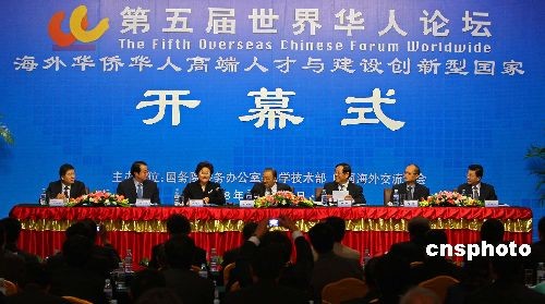 中國國務(wù)委員戴秉國在第五屆世界華人論壇開幕式上致辭。