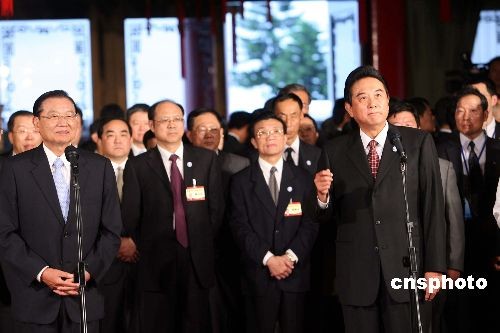 十一月三日,海峽兩岸關系協會會長陳云林乘專機抵達臺北,在海基會董事長江丙坤歡迎下入住圓山飯店。陳云林在飯店發表抵臺后首次正式談話,陳云林致詞時說,這是他第一次踏上臺灣土地,能夠如此近距離接觸可敬的臺灣鄉親,心情非常激動。 陳云林將在四日上午與江丙坤舉行歷史性的臺北會談及簽署協定。 中新社發 洪少葵 攝