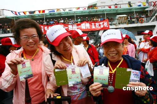 2008年11月8日上午11:30,由馬祖經貿文化交流聯誼會理事長陳雪生先生帶隊,馬祖、金門及臺灣本島福州鄉親約500人搭乘“臺馬輪”從臺灣基隆經彎靠馬祖福澳港后抵達福州港客運碼頭。此行目的主要是來榕推介馬祖旅游及赴大陸各地旅游。此舉是兩岸擴大“小三通”,特別是11月4日“兩會”商談簽署有關協議后,首次實現“兩馬”海上客運航線延伸至臺灣本島,對福州市進一步拓展與馬祖直接往來的范圍和層次有重要的意義。同時又是國臺辦王毅主任9·8期間在廈門舉行的“海峽西岸經濟區論壇”上受權發布大陸方面五項便利兩岸同胞交往的新舉措之后,臺胞循“兩馬”航線并對接臺灣本島來榕人數最多的一個團組。馬祖經貿文化交流聯誼會理事長陳雪生先生、副理事長曹爾忠、陳振清先生等馬祖知名人士也隨船抵達馬尾。據悉,截止今年10月,“兩馬”航線已運行3782航次,來往旅客達22.93萬人次。中新社發 祝敏松 攝