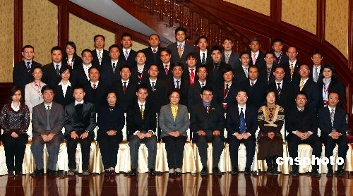 12月1日,國務院僑辦主任李海峰在北京釣魚臺國賓館會見宴請了第六期華裔新生代企業家中國經濟高級研修班的全體學員,并合影留念。李海峰指出,中國正處于改革和發展的關鍵階段,也處于工業化、現代化的重要時期。當前經濟發展中遇到的很多新情況、新問題,需要我們依靠科技進步、提高領導者素質、創新管理來解決,需要我們在發展中來解決。這將為海外僑胞參加中國經濟發展,分享中國機遇創造更加有利的條件和機會。中新社發 杜洋 攝