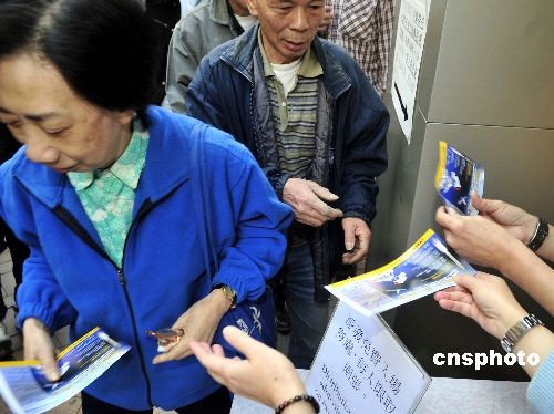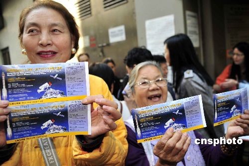 十二月二日早上九時(shí),神舟七號航天代表團(tuán)的大匯演門票在香港二十一個(gè)地點(diǎn)免費(fèi)派發(fā),每人限取兩張。中新社發(fā) 譚達(dá)明 攝