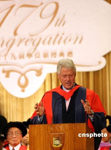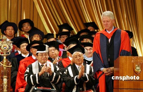 十二月四日,香港大學第一百七十九屆名譽博士學位頒授典禮隆重舉行,前美國總統(tǒng)克林頓獲頒名譽法學博士學位。中新社發(fā) 武仲林 攝
