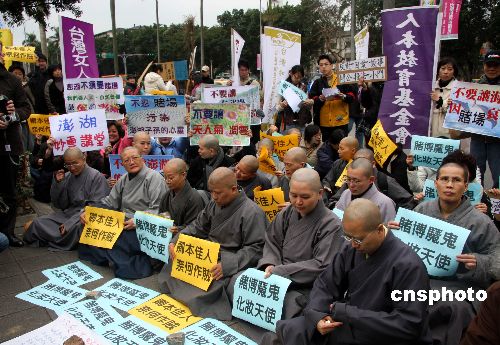 1月12日,臺灣“立法院”將表決離島建設(shè)條例部分條文修正草案,即博弈條款。圖為約百名反賭博合法化聯(lián)盟的成員,當(dāng)天上午到“立法院”門口陳情抗議,表達(dá)反賭博合法化立場。中新社發(fā) 陳立宇 攝