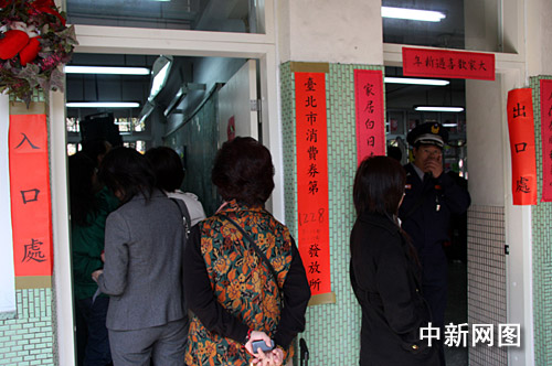 1月18日上午,備受全臺和外界關注的消費券開始在臺灣各發放所發放。圖為設于臺北市光復小學內的第1228號消費券發放所民眾正在排隊領取消費券。陳立宇 攝