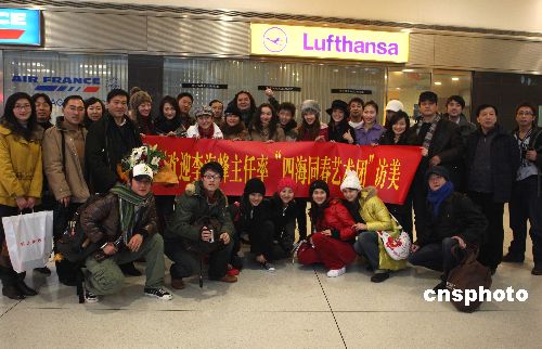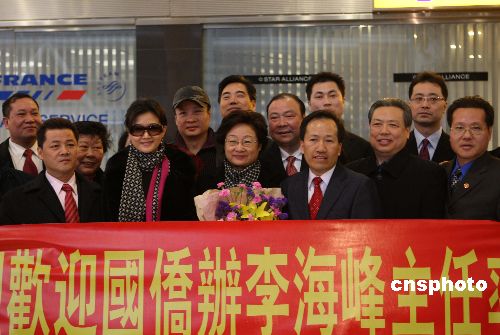1月28日,中國(guó)國(guó)務(wù)院僑辦主任李海峰率領(lǐng)“文化中國(guó)·四海同春”藝術(shù)團(tuán)一行40人抵達(dá)紐約,開(kāi)始在美國(guó)為期19天的藝術(shù)之旅,與美國(guó)華人華僑同慶新春。著名歌唱家宋祖英、閻維文等隨團(tuán)抵達(dá)。中國(guó)駐紐約總領(lǐng)事彭克玉、美東華人社團(tuán)聯(lián)合總會(huì)共同主席梁冠軍和陳清泉、秘書(shū)長(zhǎng)林學(xué)文,美國(guó)福建同鄉(xiāng)會(huì)代主席鄭棋,美國(guó)福建公所代主席鄭時(shí)甘,美國(guó)上海聯(lián)誼會(huì)會(huì)長(zhǎng)承立平,崇正會(huì)主席朱天長(zhǎng)等紐約當(dāng)?shù)貎S領(lǐng)及各客屬僑團(tuán)負(fù)責(zé)人等,均到機(jī)場(chǎng)迎接李海峰一行。中新社發(fā) 魏晞 攝