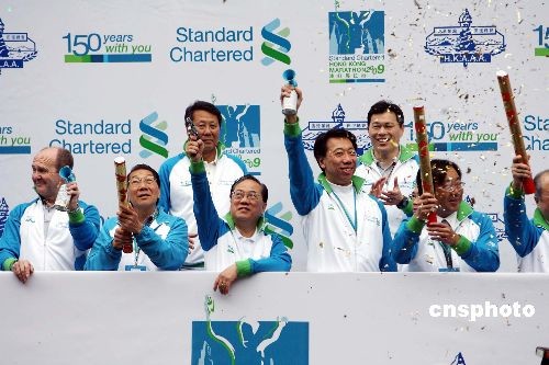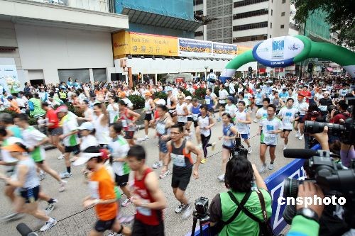 二月八日清晨,香港一年一度的馬拉松賽在尖沙咀彌敦道舉行,特區(qū)行政長(zhǎng)官曾蔭權(quán)及眾多嘉賓主持全程馬拉松賽起步儀式。本屆馬拉松賽三項(xiàng)賽事共吸引中外選手五萬(wàn)五千人參加,打破歷屆紀(jì)錄。中新社發(fā) 洪少葵 攝