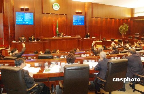 澳門立法會二月二十五日下午經(jīng)細(xì)則性討論后,高票通過了《維護國家安全法》。圖為法案通過后,議員們紛紛舉手發(fā)言。中新社發(fā) 畢永光 攝
