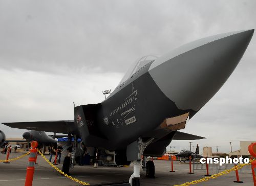 美國十一月中旬在內華達州內利斯空軍基地舉行紀念空軍成立六十年大規模飛機展示中,未來主力戰機F-35“閃電2聯合攻擊戰斗機”的公開亮相最為矚目。這種多國合作研制的新一代隱秘戰術飛機,將更新裝備美國空軍、海軍和海軍陸戰隊,以及英國皇家海軍與皇家空軍等多國部隊。中新社發 賈國榮 攝