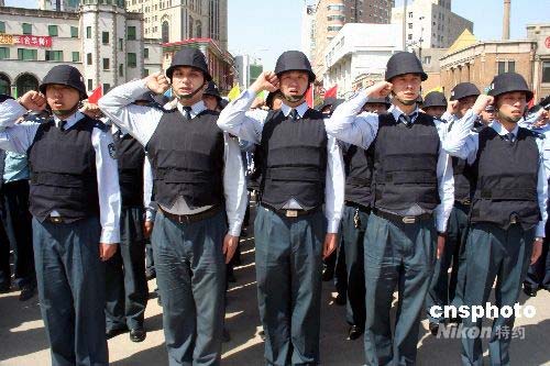 5月8日,遼寧省暨沈陽市保安系統(tǒng)奧運安保誓師大會在中山廣場舉行。會上公安部門領(lǐng)導對保安提出要求,保安代表表決心,與會保安人員面對國旗和奧運會會旗莊嚴宣誓:一切服從奧運會,誓保奧運會的絕對安全。參加大會的有各級領(lǐng)導、各方面安保代表600多人。中新社發(fā) 劉寶成 攝