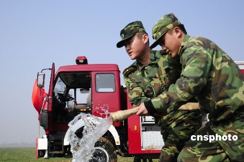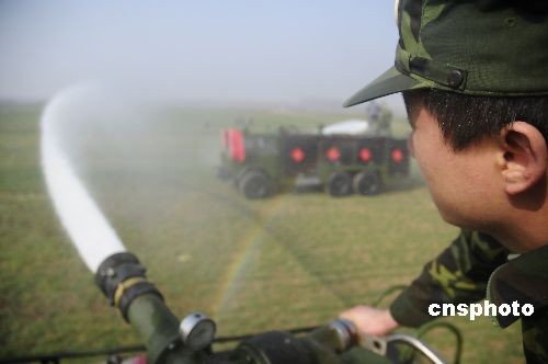 2月10日,駐南陽某部的官兵們組成了一支抗旱搶險突擊隊,出動了四輛大型洗消車,往返于河溝與麥田之間,讓干渴的麥苗酣暢淋漓地喝了個夠。中新社發 付海厚 攝