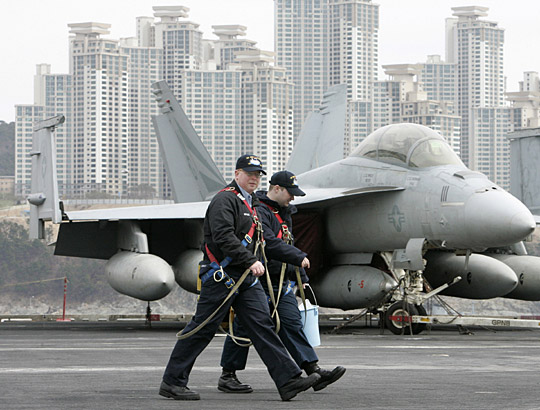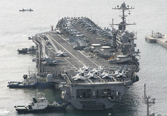 中新網3月11日電 據韓聯社報道,將參加韓美“關鍵決斷”聯合軍演的美國第3艦隊核動力航母“約翰·斯坦尼斯”號(9.6萬噸),11日上午抵達了釜山海軍作戰司令部基地。