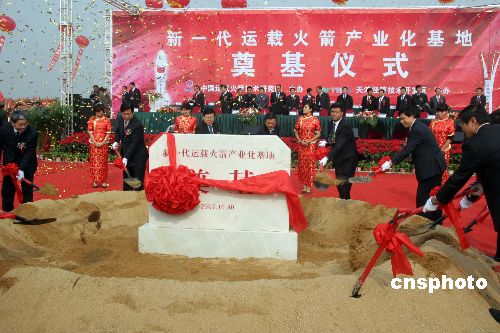 十月三十日,中國國防科學(xué)技術(shù)工業(yè)委員會、天津市政府官員同中國航天科技集團(tuán)公司及該公司所屬中國運(yùn)載火箭技術(shù)研究院負(fù)責(zé)人等,在天津?yàn)I海新區(qū)為中國新一代運(yùn)載火箭產(chǎn)業(yè)化基地?fù)]鍬奠基。中國新一代運(yùn)載火箭產(chǎn)業(yè)化基地項(xiàng)目,是新一代運(yùn)載火箭研制工程的基礎(chǔ)保證,也是后續(xù)批量生產(chǎn)和產(chǎn)業(yè)化、軍民結(jié)合的航天高科技重要基地。該項(xiàng)目總投資約數(shù)十億元人民幣,總占地面積約三千畝,分為一期工程和二期工程。建成后將滿足中國未來三十至五十年發(fā)展空間技術(shù)及和平利用空間的需要,實(shí)現(xiàn)運(yùn)載技術(shù)跨越式發(fā)展和航天可持續(xù)發(fā)展,對引領(lǐng)中國高科技產(chǎn)業(yè)發(fā)展有著重大的輻射和推動作用。中新社發(fā) 孫自法 攝