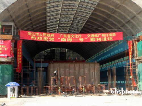 一月七日,“南海一號”入住的“水晶宮”開始封館,南墻開始建造,澆鑄鋼梁。為了保證施工質(zhì)量,南墻的建設(shè)工期需要兩個(gè)月左右。“水晶宮”南墻面向大海,高二十米,寬四十米,與其他三面墻一樣,南墻上部也有觀光走廊,游客可通過觀光走廊上的透明亞克力膠板觀看“南海一號”。南墻建好后,“水晶宮”馬上就可以引灌海水至十二米深,注入“水晶宮”的海水溫度、微生物生長情況等,都將與“南海一號”沉沒后的海域環(huán)境相同。中新社發(fā) 索有為 攝
