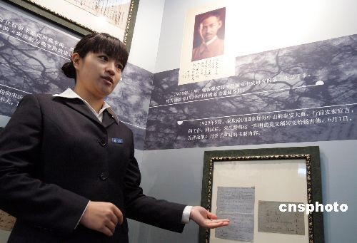 4月5日,孫中山秘書、宋慶齡摯友——楊杏佛的七百余件珍貴遺物在上海解密,內容涉及民國政治、科技及文學界秘聞。圖為在上海宋慶齡陵園首次公展的部分楊杏佛珍貴遺物,包括一九二九年,宋慶齡致信楊杏佛,委托其在上海報章刊登“不再參加國民黨工作”的英語聲明稿及信函原件。中新社發 潘索菲 攝