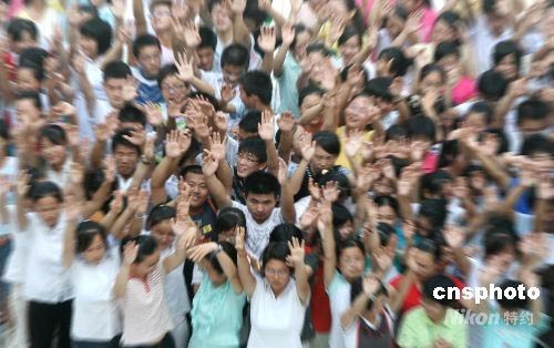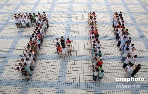 2008年7月11日是“世界人口日”,安徽省含山縣含山中學200余名中學生在老師的組織下以行為藝術的形式表演“擁擠的地球”,并組成“7·11”圖案,以此呼吁人們重視人口問題,并關注人口與資源、環境等關系,紀念第19個“世界人口日”。中新社發 程千俊 攝