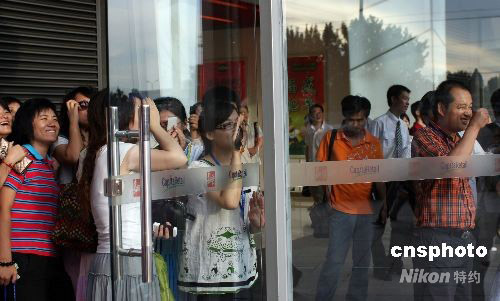 8月1日傍晚,北京出現日偏食,位于西直門的西環廣場下聚集了許多人觀看。中新社發 王昊 攝