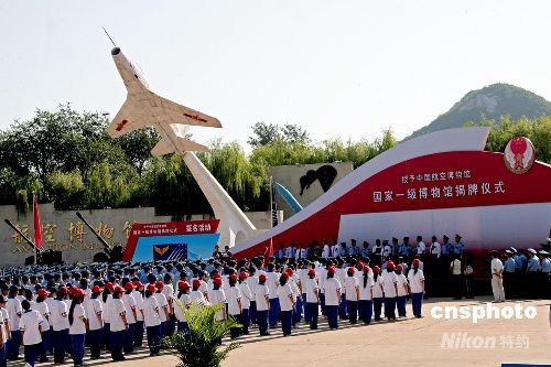 曾先后被中宣部等部委命名為“全國愛國主義教育基地”、國家旅游局評定為國家AAAA級景區的中國航空博物館,被國家文物局正式批準為首批國家一級博物館。9月2日上午,中國航空博物館在該館舉行了揭牌儀式。中新社發 譚超 攝