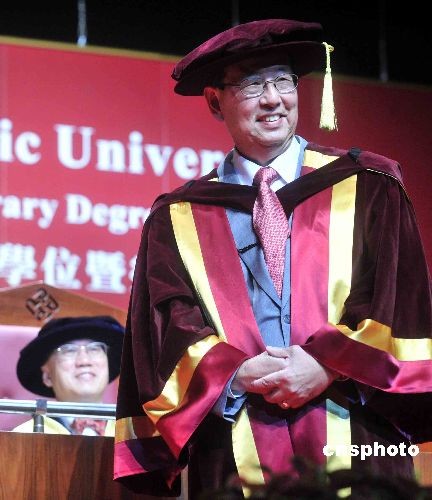 香港金利來集團董事會主席、前全國人大常委曾憲梓,十月二十三日,獲香港理工大學頒授榮譽社會科學博士學位。中新社發 譚達明 攝