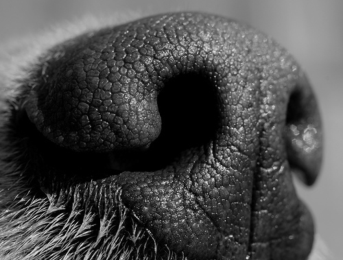 據(jù)測(cè)量,人類的嗅覺細(xì)胞有500萬個(gè),而狗的嗅覺細(xì)胞則有2億多個(gè),是人類的40倍,可以分辨大約2萬種氣味,經(jīng)過特殊訓(xùn)練的狗,可以分辨出犯罪分子攜帶的可卡因,甚至可以分辨出癌癥的氣味。人們研究的焦點(diǎn)始終聚集在狗的嗅覺器官如何捕捉氣味,無人關(guān)注狗鼻子上的粘液。傳統(tǒng)的觀點(diǎn)認(rèn)為,狗的鼻子保持濕潤是身體健康的一種表現(xiàn),但是現(xiàn)在科學(xué)家發(fā)現(xiàn)狗鼻子上的粘液層還有助于它們辨別氣味。
