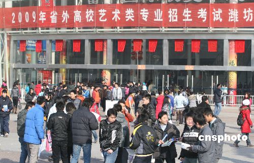 2月3日,山東濰坊藝考報名的首日,濰坊市區富華國際展覽中心擠滿了來自各地的考生。據悉,2009年山東濰坊省外藝考將于2月5日正式開考。中新社發 王勇 攝